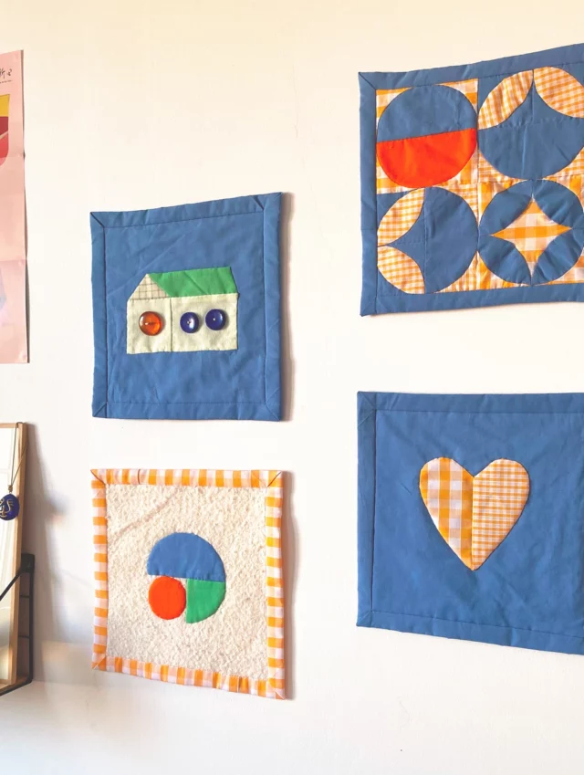 Say Hi ! 🧡 Nouveaux tableaux textiles à créer soi- Say Hi ! 🧡 Nouveaux tableaux textiles à créer soi-même pendant les ateliers patchwork : la maison ou le coeur ? Bleu ou orange ? Les deux ! 🤗 Et plein d’autres formes simples à imaginer & confectionner. Inscription sur olleta.fr